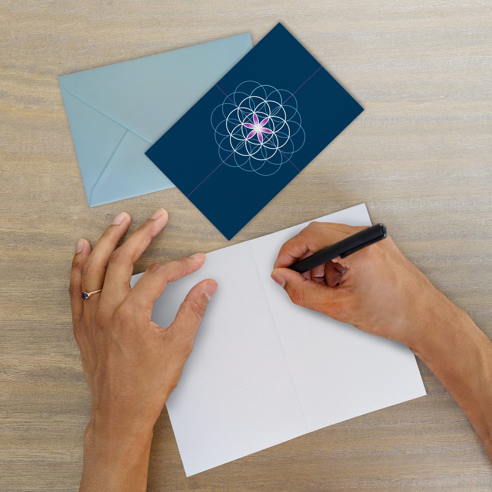 BONANI Grußkarte 07 "Blume des Lebens", heilige Geometrie, dunkelblau, 11 x 17 cm, Klappkarte inkl. Umschlag