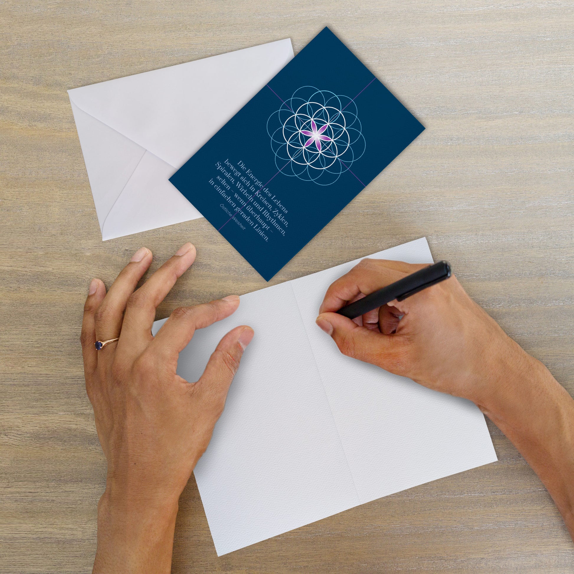 BONANI Grußkarte 08 "Blume des Lebens", heilige Geometrie, dunkelblau mit Zitat, 11 x 17 cm, Klappkarte inkl. Umschlag