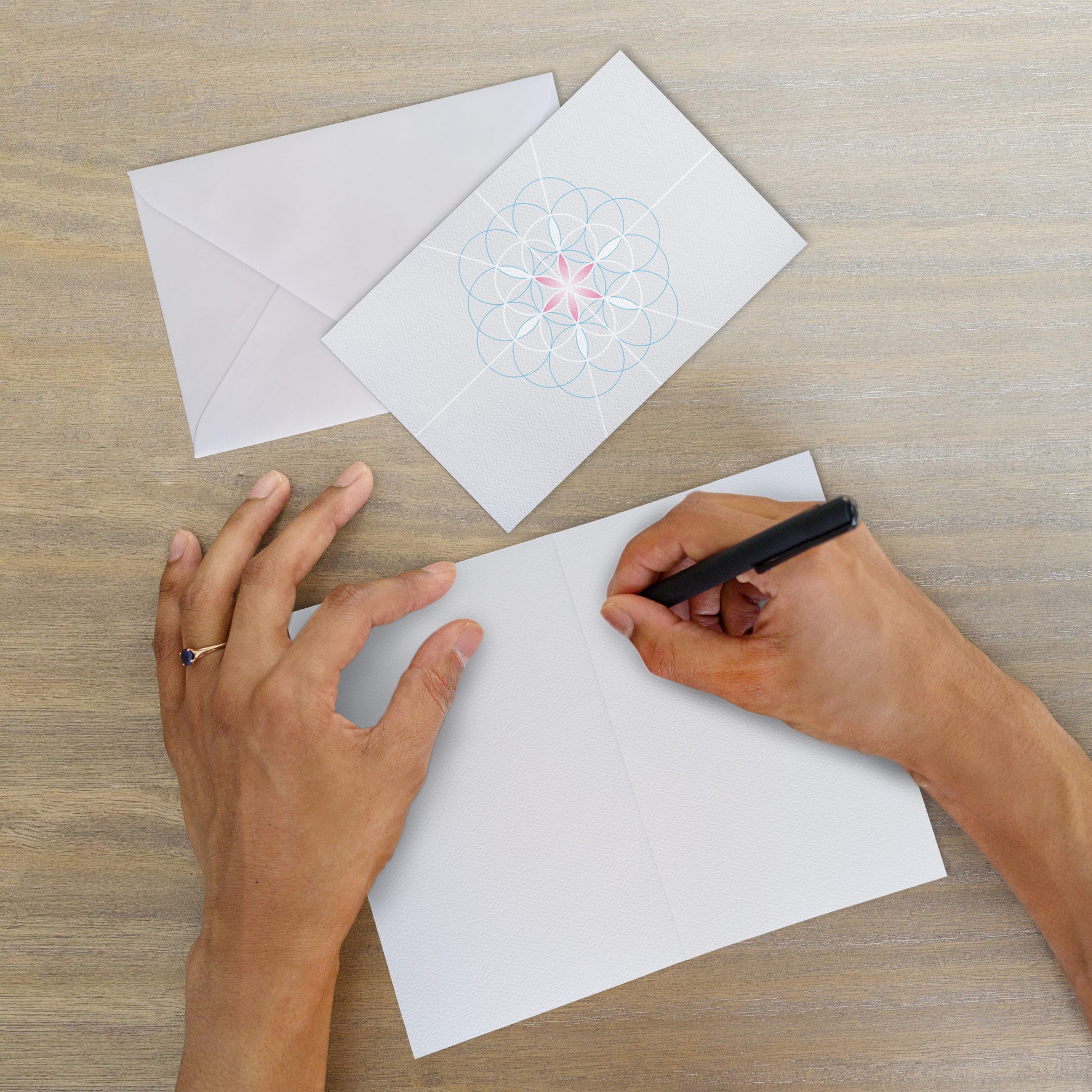 BONANI Grußkarte 05 "Blume des Lebens", heilige Geometrie, hell, 11 x 17 cm, Klappkarte inkl. Umschlag
