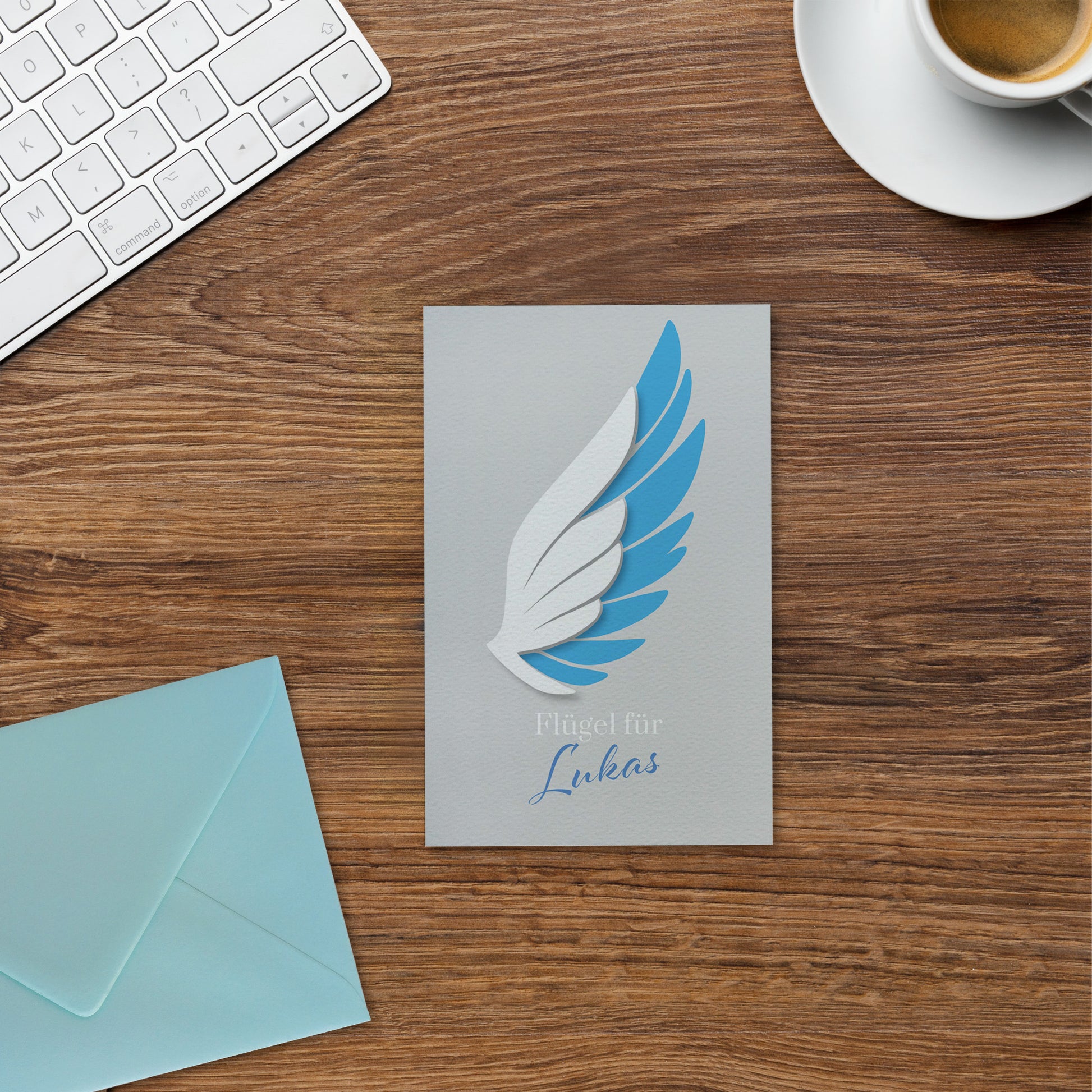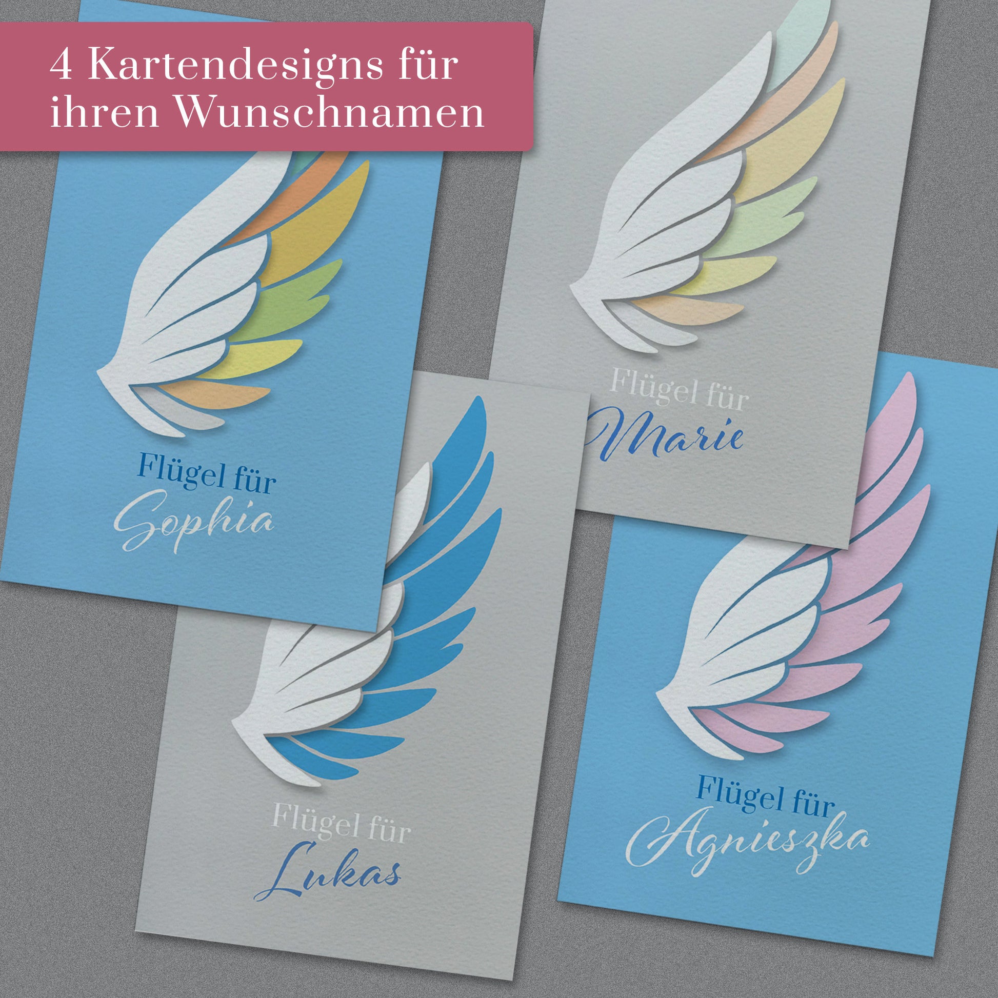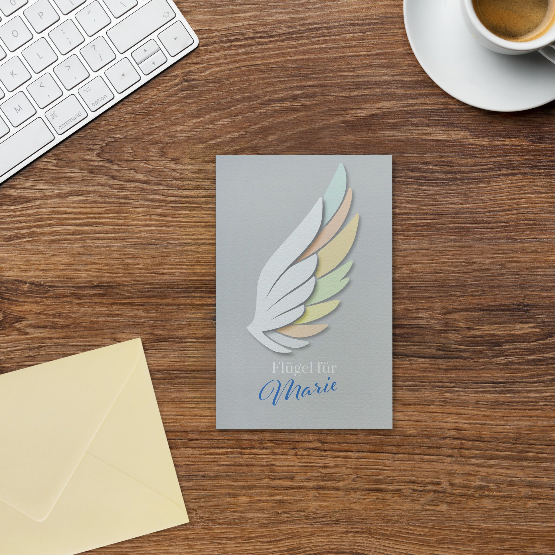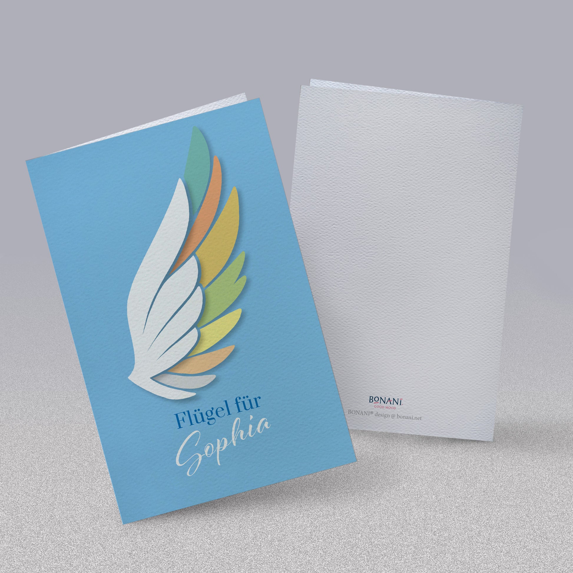 Personalisierte Glückwunschkarte "Flügel" mit Ihrem Wunschnamen, Klappkarte inkl. Umschlag