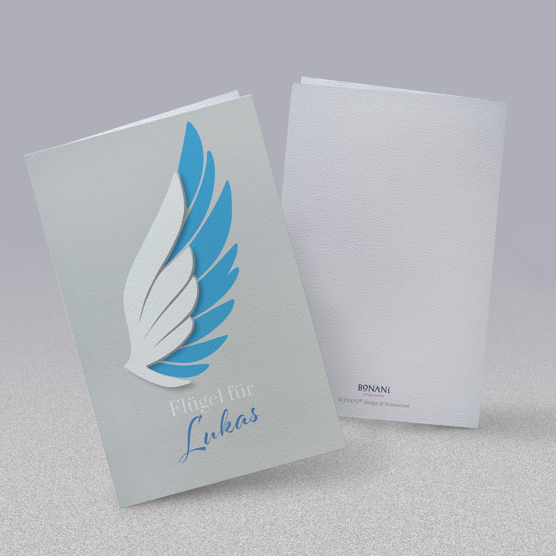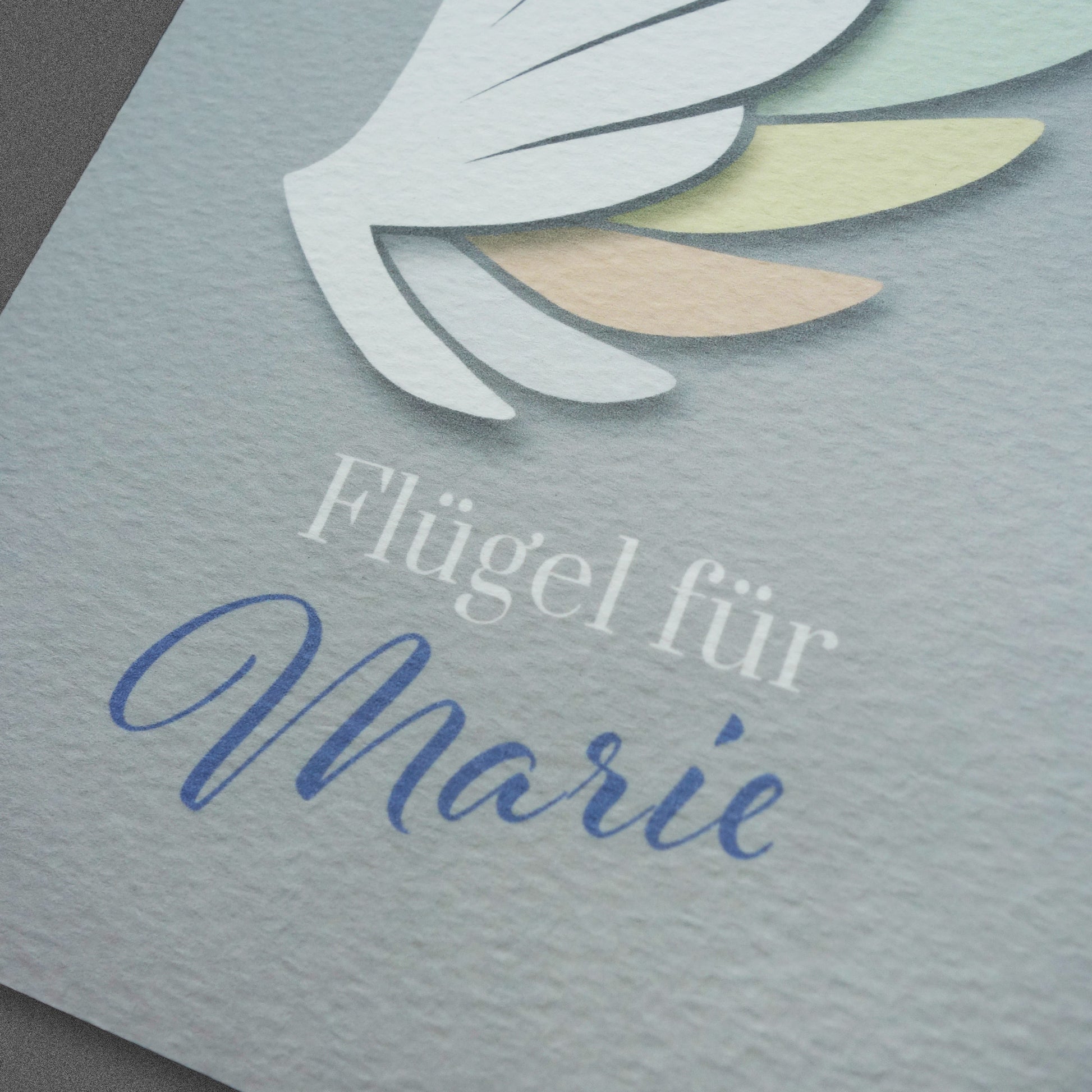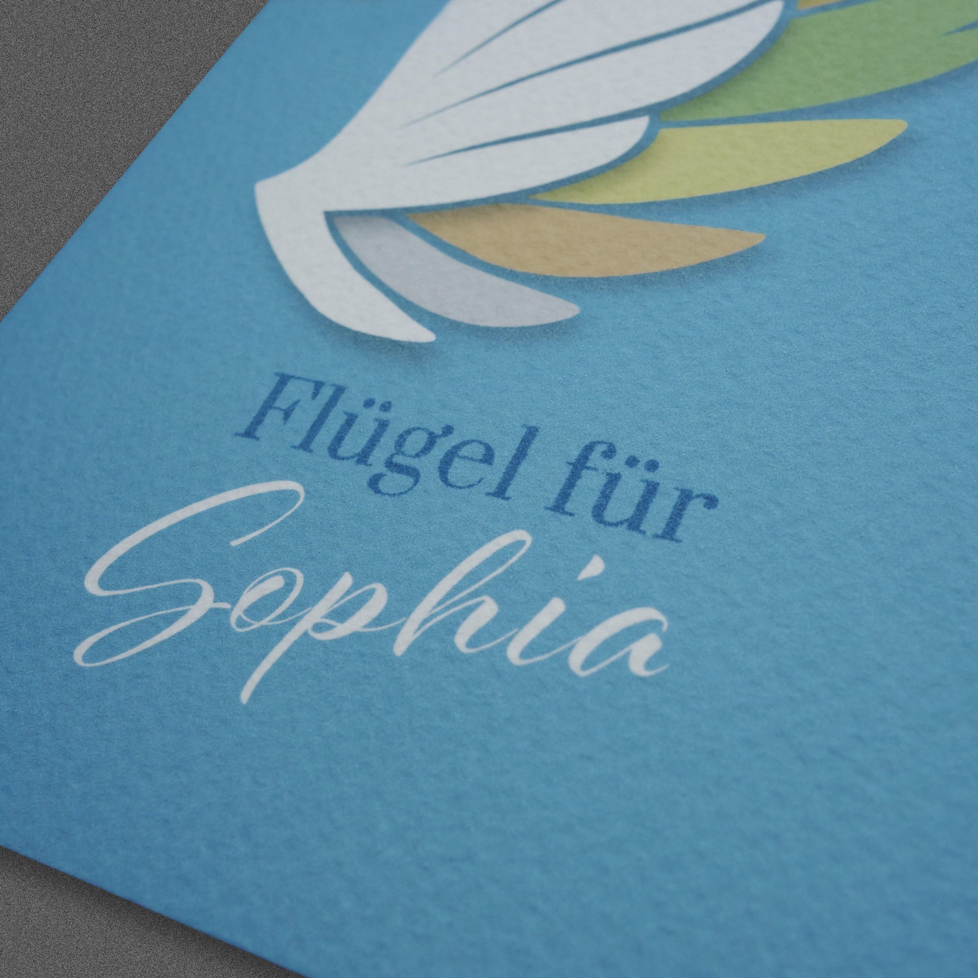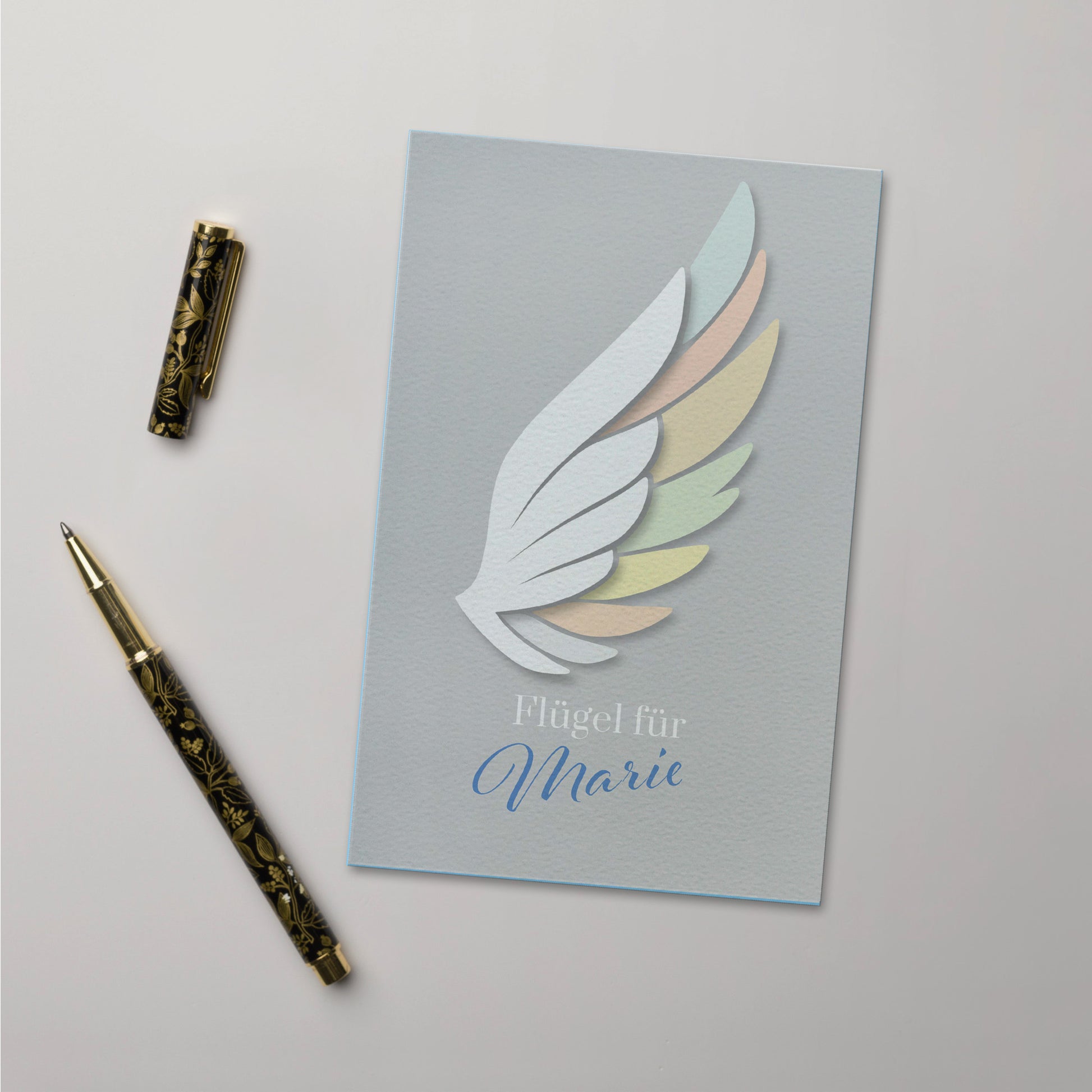 Personalisierte Glückwunschkarte "Flügel" mit Ihrem Wunschnamen, Klappkarte inkl. Umschlag