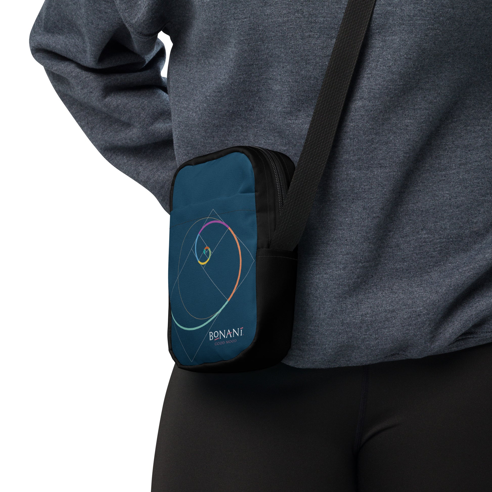 In diese kompakte Umhängetasche passt alles Wichtige, was man immer gerne dabeihaben will. Handy, Geldbörse, Schlüssel, Kosmetika und andere kleine Utensilien. Die mit der Spirale des Goldenen Schnitt stilvoll gestaltete Tasche ist robust und universell einsetzbar. Mit verstellbaren Trägern und zwei geräumigen Taschen ist sie das ultimative Accessoire für unterwegs.