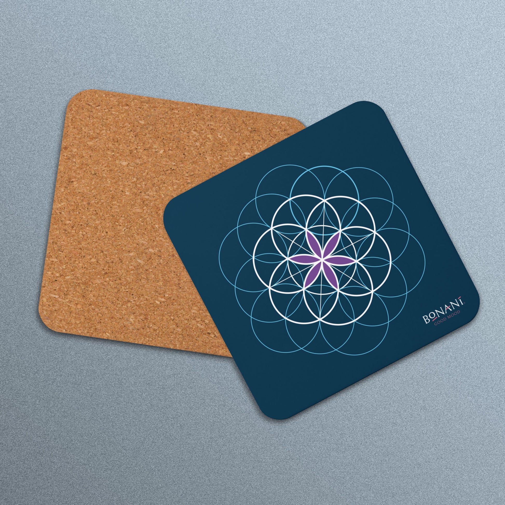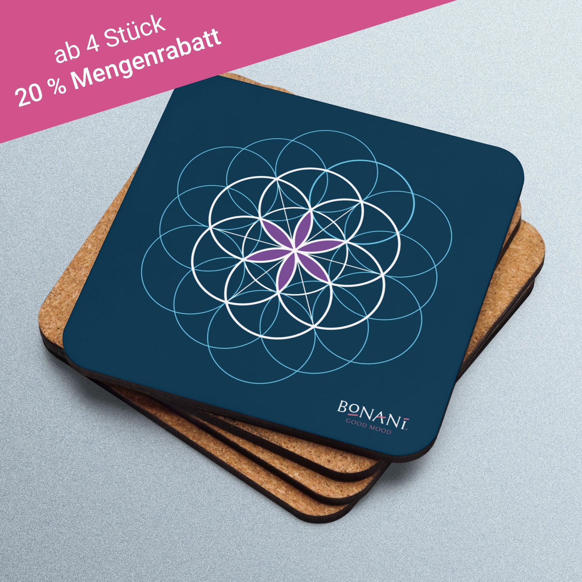Dieser Korkuntersetzer passt perfekt zu Deiner (BONANI-) Lieblingstasse! Erschaffe Dir damit ein attraktives Ambiente mit der Energie der Blume des Lebens und schütze nebenbei Deinen Couchtisch vor Flecken. Mit der Hochglanzbeschichtung auf der Oberseite sieht er sehr edel und hochwertig aus. Der Untersetzer ist wasserdicht, hitzebeständig und langlebig. Ein schönes energetisches Accessoire für Dein Zuhause oder als besonderes Geschenk für Deine Freunde und Familie.